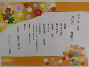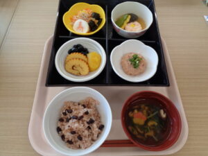 当施設では、新年を迎え元日には「おとそ」や「おせち料理」が振舞われました。